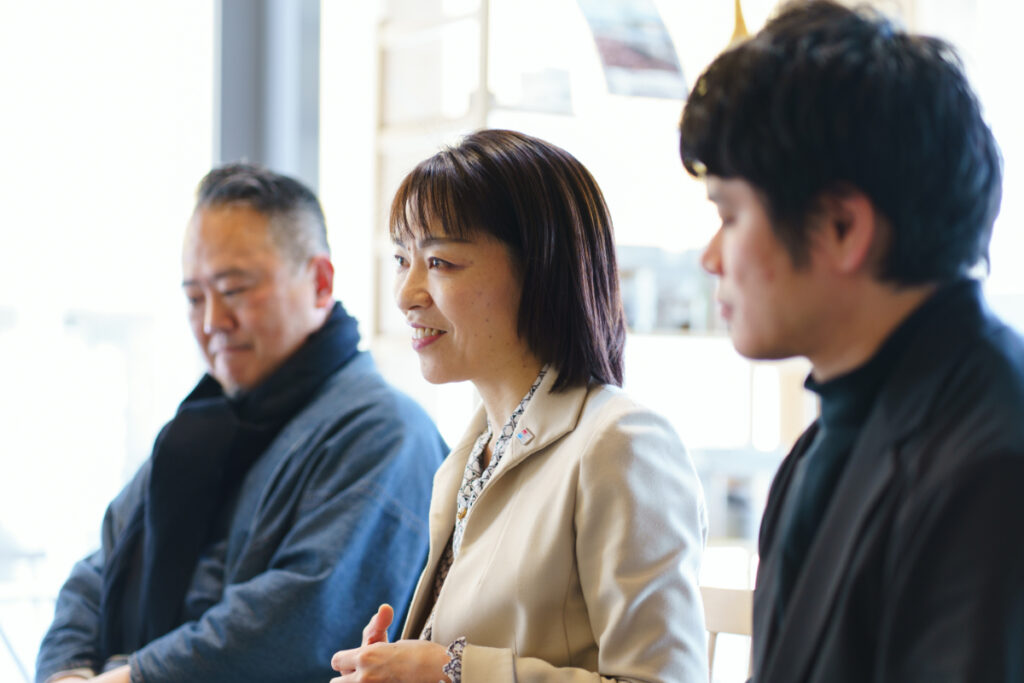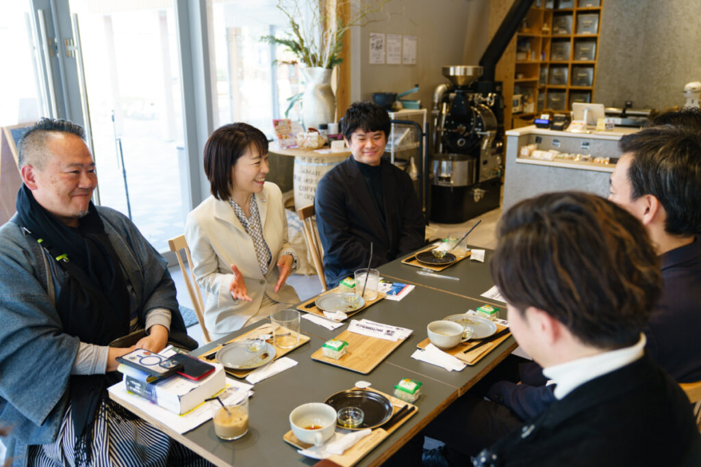 11月に就任した横田美香知事と企業の経営者が、県庁敷地内のカフェで広島県でのチャレンジやこれからの取組などについて語りました